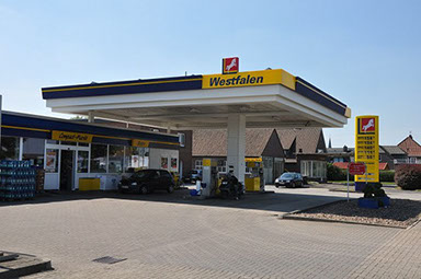 Unsere Westfalen-Tankstelle an der B51 am Ortsausgang in Richtung Bassum in Twistringen mit reichhaltig gefüllten Tankstellenshop.