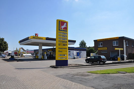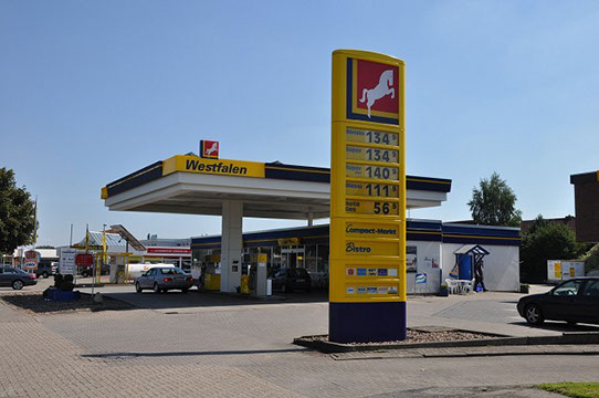 Unsere Westfalen-Tankstelle an der B51 am Ortsausgang in Richtung Bassum in Twistringen mit reichhaltig gefüllten Tankstellenshop.